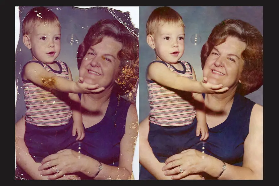 Repairing severely torn or damaged images, add or remove a person or object from a photo, change background, add color to a black & white photo.